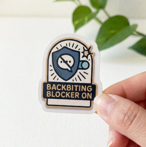 • Backbiting Blocker ON – Shield Sticker (5 cm) • Waterproof Vinyl