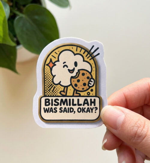 • Bismillah Was Said, Okay? – Muslim Cookie Friend Sticker (5 cm) • Waterproof Vinyl