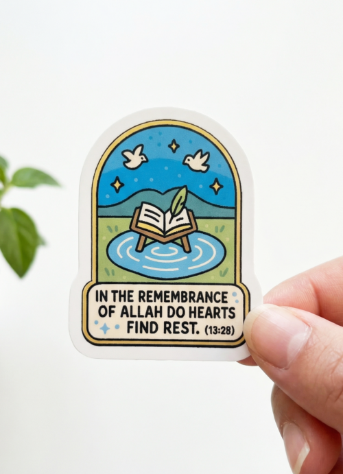 • In the remembrance of Allah do hearts find rest – Vinyl Waterproof Sticker (5 cm)