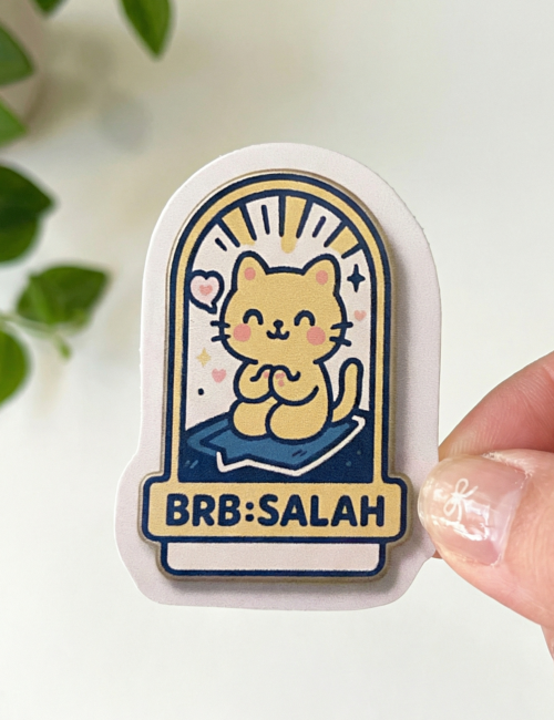 • BRB: Salah – Muslim Cat Praying Sticker (5 cm) • Waterproof Vinyl