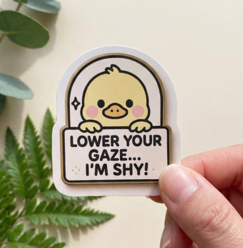 • Lower Your Gaze – Shy Duck Sticker (5 cm) • Waterproof Vinyl