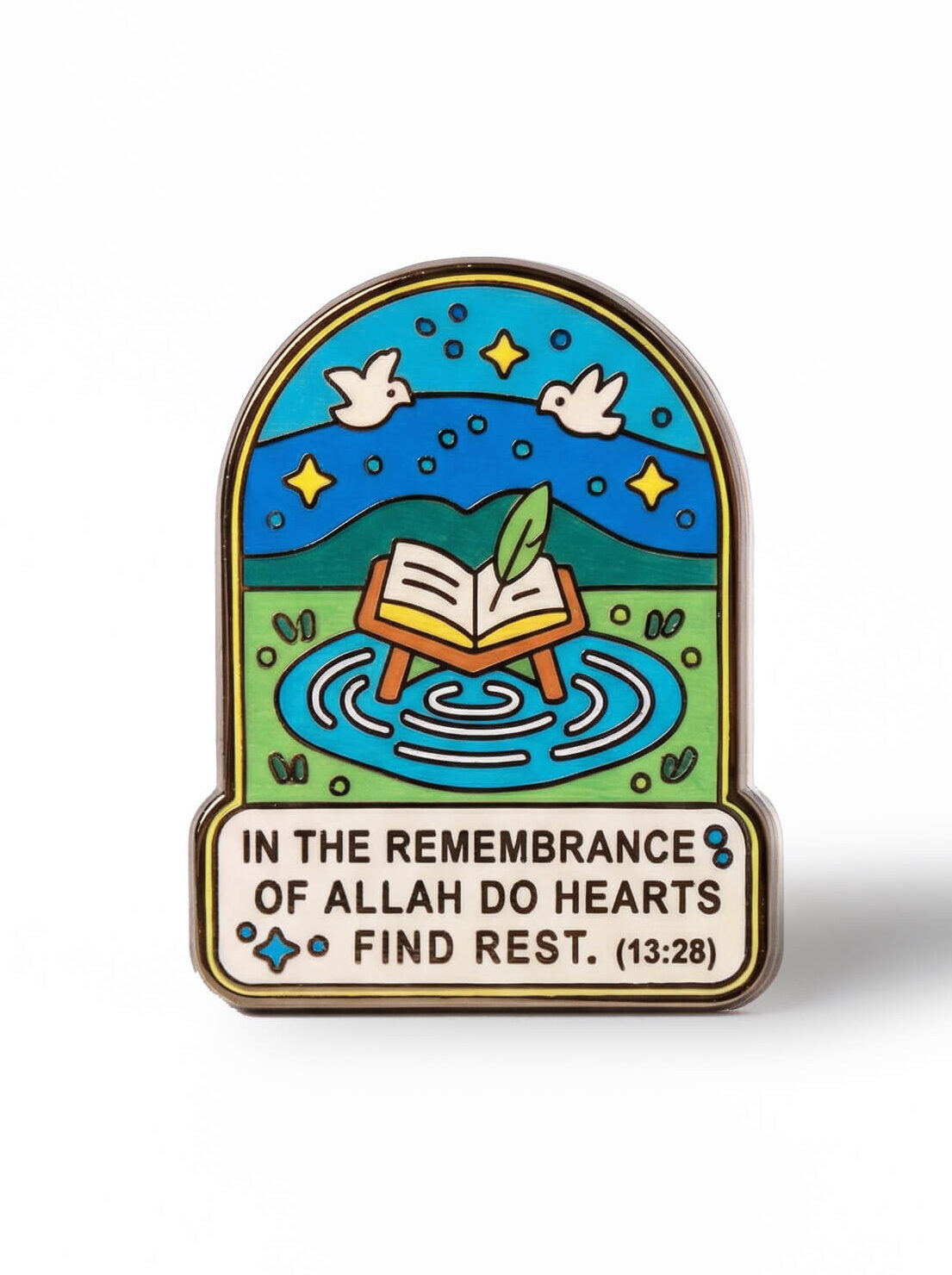 Whether you’re heading to class, work or the masjid, this Qur’an verse enamel pin adds a gentle, heart-soothing touch to your day every time you see it.