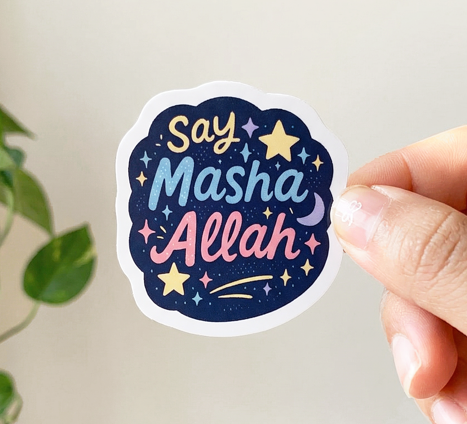 Celebrate the good with a gentle reminder to say “Masha Allah.” This starry, night-sky sticker pops on phones, laptops, water bottles and journals. Colourful, durable and full of barakah vibes, perfect as a daily cue for gratitude and good manners.